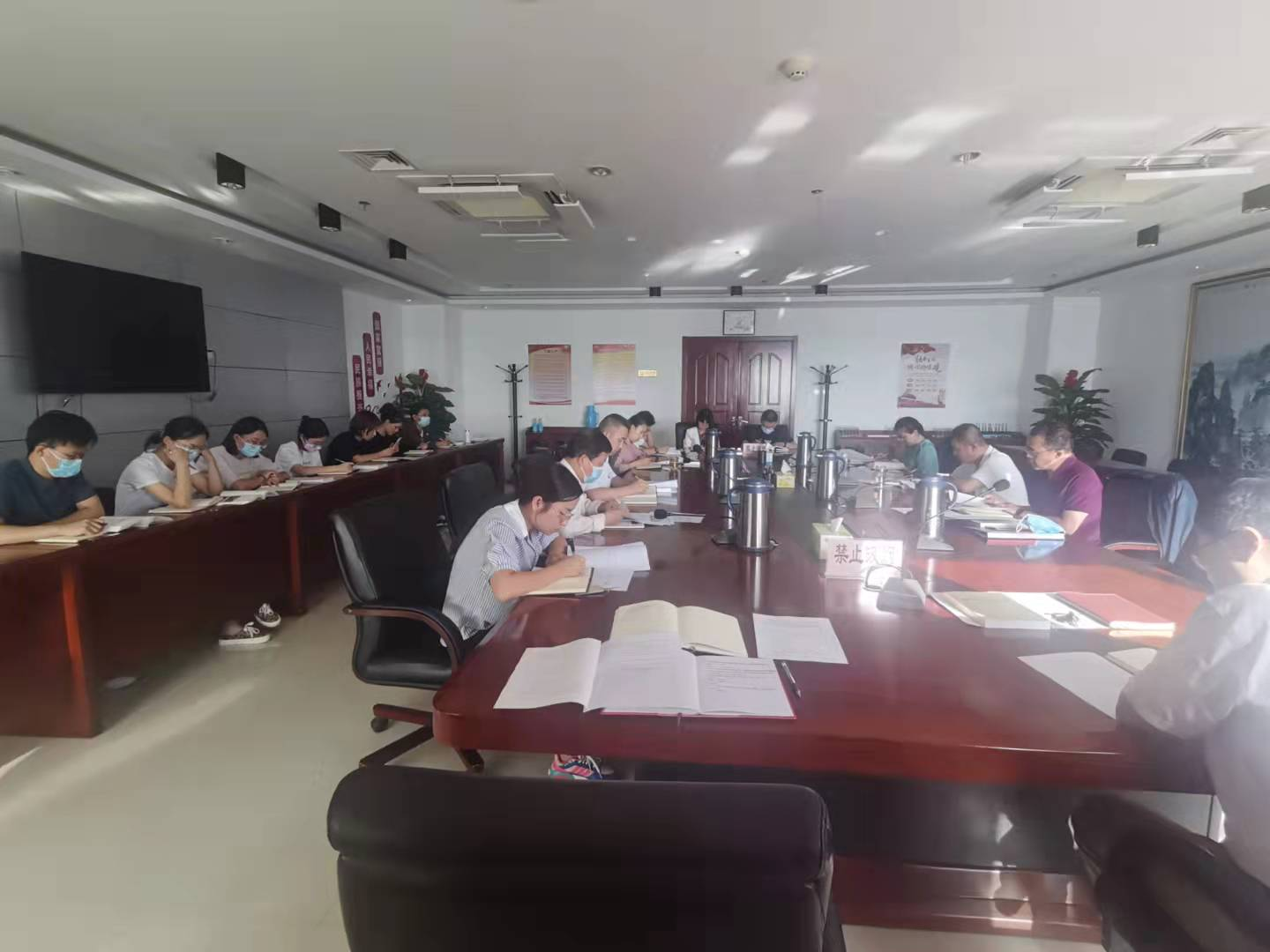 为全面学习贯彻习近平总书记“七一”重要讲话精神,深刻领会把握“七一”重要讲话精神重大意义、丰富内涵、核心要义和实践要求,9月6日,监控信息中心、基金监管处党支部组织党员干部开展了习近平总书记“七一”重要讲话精神集中学习研讨活动。局党组成员、副局长李长存同志主持会议并进行了点评。