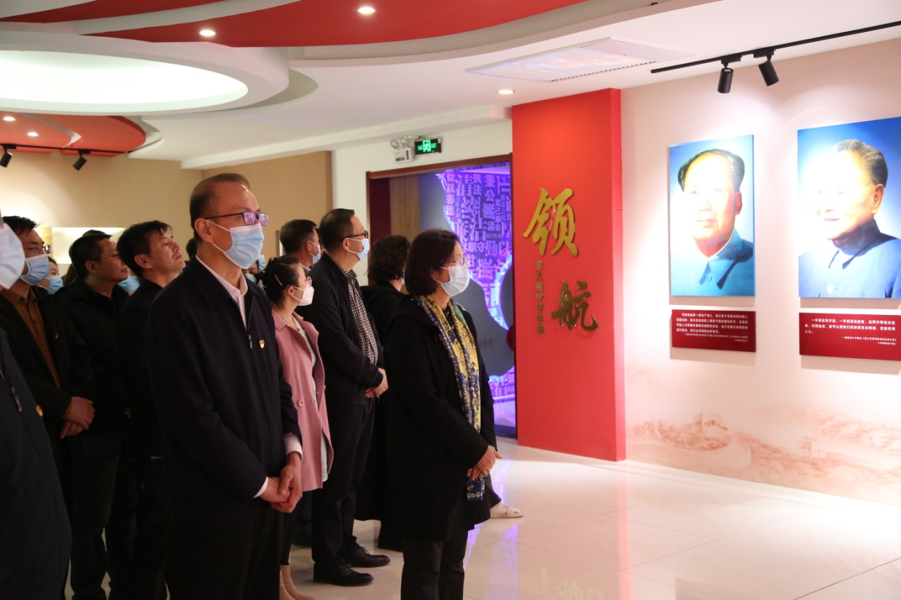 在廉政警示教育展厅讲解员的引导下,依次参观了领航、镜鉴、笃行三个展厅,通过现场讲解、图文展示、实物陈列、多媒体应用等,直观了解近年来全区反腐倡廉工作情况。领航厅展示了党的十八大以来,中国共产党以“十年磨一剑”的韧劲一刻不停推进全面从严治党、推动自我革命取得的成果;镜鉴厅用一个个“鲜活”的案例、一张张真实的图片,一幅幅生动的图片、一桩桩典型的案件、一部部声泪俱下的忏悔视频,给大家上了一堂印象深刻的廉政警示教育课,让违法违纪的政治生命素材,成为党员干部明断得失的镜子,用身边人身边事为党员干部敲响拒腐的警钟;在笃行厅里大家认真学习了钟南山、袁隆平、王兰花等“共和国勋章”和“七一勋章”获得者的感人事例,激发干部干事创业的内生动力。局党组书记任永忠同志参展时强调,要以身边人身边事为反面教材,时刻警醒,自觉坚定理想信念,不断提高政治站位和政治觉悟,不断增强拒腐防变的思想认识和能力。最后任永忠同志带领参展党员在鲜红的党旗面前重温入党誓词。