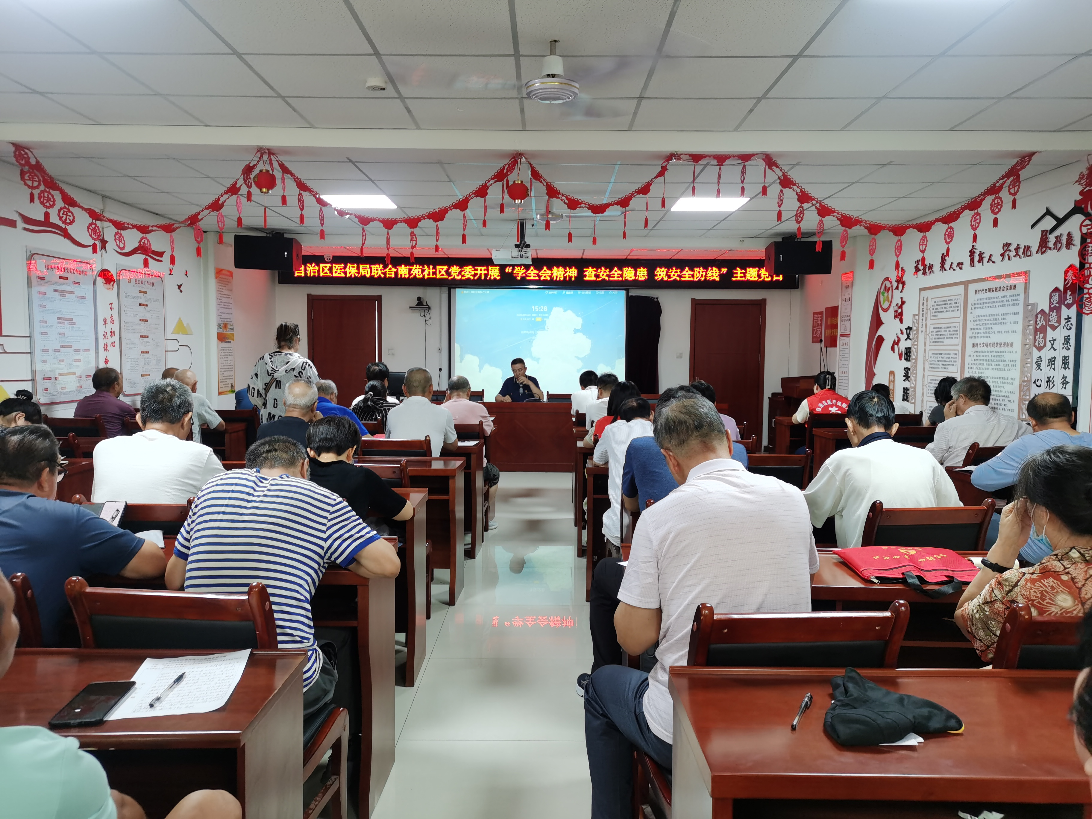 为深入推进学习贯彻习近平新时代中国特色社会主义思想主题教育,认真学习习近平总书记关于安全生产重要论述和重要指示批示精神及自治区党委十三届四次全会精神,进一步改进机关党员干部作风,密切党群干群关系,不断提高服务中心、服务基层、服务群众的能力,8月16日下午,自治区医疗保障监控信息中心党支部依托“机关干部基层工作周”、“双报到、双报告”、“文明礼让 平安出行”专项行动活动载体,联合金凤区长城中路街道南苑社区党委共同开展“共创共建和谐社区”暨“学全会精神 查安全隐患 筑安全防线”主题党日活动。