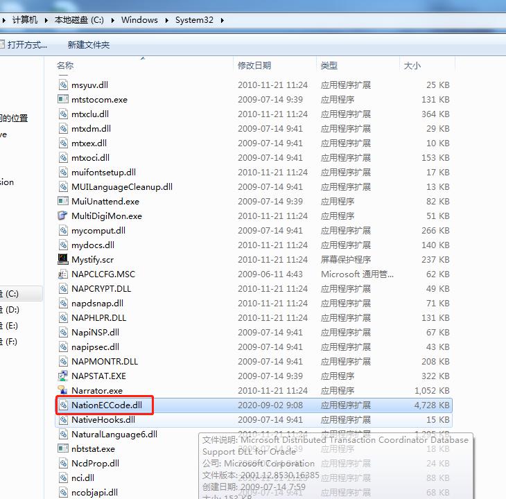 (2)、如果是64位操作系统,就将【NationECCode.dll】、【NXMI.dll】这两个文件拷贝到:C:\Windows\SysWOW64这个文件夹下,注意拷贝前先将原先的【NXMI.dll】删除,注意如图所示: